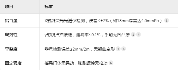 2. 铅玻璃:厚度按防护需求选择(如CT机房主防护≥2.5mmPb,对应厚度约18mm),密度≥4.2g/cm³,透光率≥85%,无气泡、划痕。